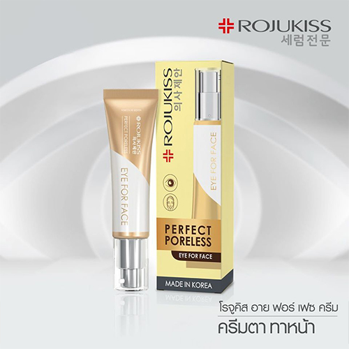 Rojukiss Perfect Poreless Eye for face cream creamหรือ “โรจูคิสครีมตาทาหน้า” ครีมบำรุงผิวรอบดวงตาที่มีประสิทธิภาพสูงที่ใช้ได้ทั้งผิวรอบดวงตาและทั่วใบหน้า เป็นผลิตภัณฑ์ที่ได้รับแรงบันดาลใจจากการดูแลผิวให้ดูกระจ่างใสและอ่อนเยาว์ของเหล่าคนดังในประเทศเกาหลีใต้ โดยทั่วไปครีมรอบดวงตาจะมีราคาแพงกว่าครีมบำรุงผิวหน้า Rojukiss จึงได้ทำการพัฒนา “ครีมตาทาหน้า” ให้เป็นครีมบำรุงผิวที่ใช้ได้ทั้งรอบดวงตาและทั่วใบหน้า ในราคาที่ผู้บริโภคสามารถซื้อได้ ช่วยฟื้นบำรุง ลดเลือนริ้วรอยแห่งวัยและความหมองคล้ำ ให้ผิวดูกระจ่างใส อ่อนเยาว์ รูขุมขนดูกระชับเรียบเนียนขึ้น