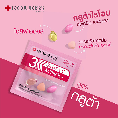 ผลิตภัณฑ์เสริมอาหารตราโรจูคิส สูตรกลูต้า 3 เม็ด ประกอบด้วยสารสำคัญ ที่ทำงานร่วมกันอย่างเต็มประสิทธิภาพ เพื่อส่งมอบผลลัพธ์ผิวสว่างกระจ่างใส สุขภาพดี จุดด่างดำดูลดเลือน ผิวแข็งแรงไม่ไวต่อแดด