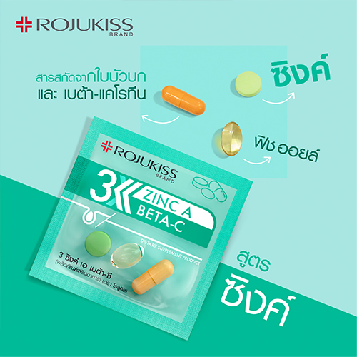 ผลิตภัณฑ์เสริมอาหารตราโรจูคิส สูตรซิงค์ 3 เม็ด ประกอบด้วยสารสำคัญ ที่ทำงานร่วมกันอย่างเต็มประสิทธิภาพ เพื่อส่งมอบผลลัพธ์ผิวใสสุขภาพดี ลดสิว การอักเสบของสิว และรอยที่เกิดจากสิว